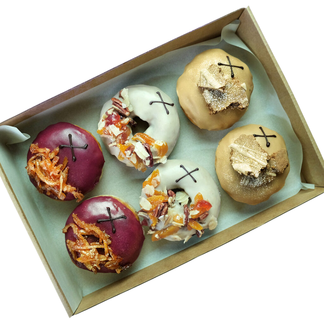 This Christmas, unwrap the perfect sweet treat with our hand-crafted, luxury doughnuts. Featuring our Vegan Gingerbread & Caramel Doughnut, Vegan Spiced Pear & Cinnamon Doughnut, and White chocolate & Ginger Doughnuts.
